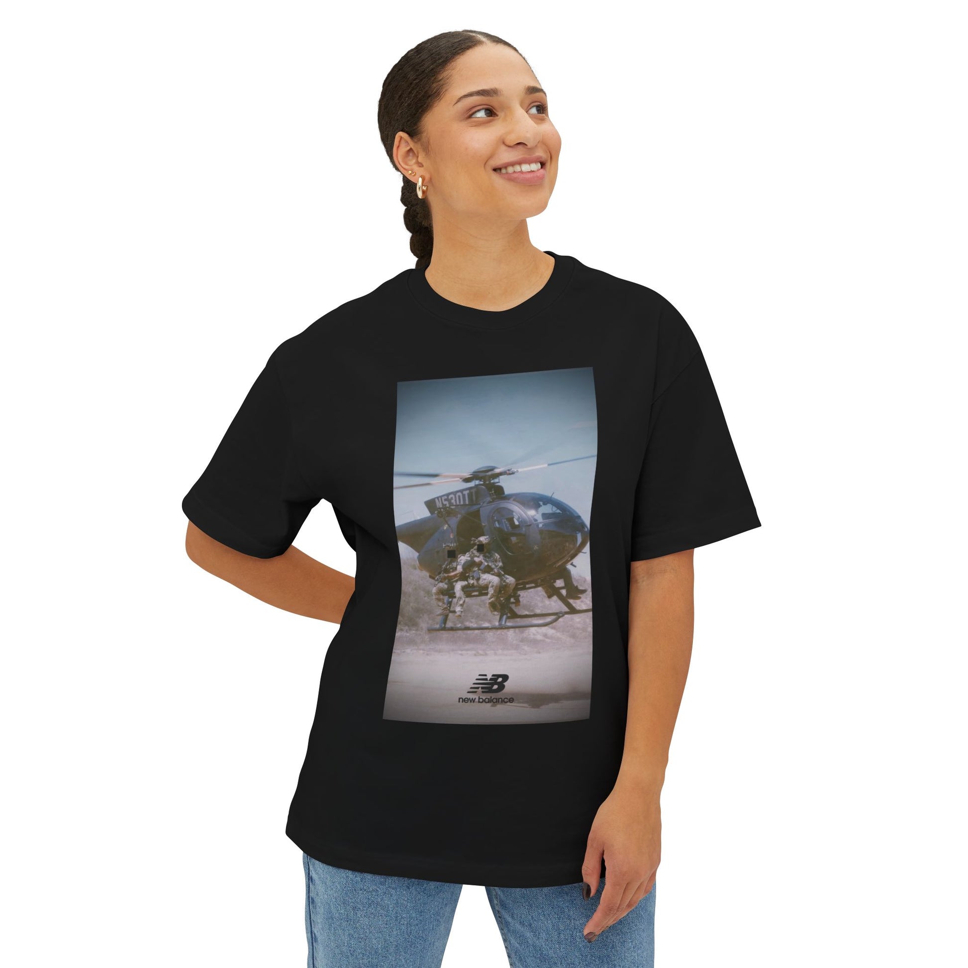 This oversized boxy tee brings a laid-back street edge to everyday wear. The relaxed, dropped-shoulder silhouette drapes easily over the body, creating a casual, lived-in look that works layered or solo. The front features a moody, cinematic graphic with subtle silhouettes and a bold logo block, giving the shirt an urban, dusk-time vibe—like late-night runs, city skate sessions, or coffee-fueled creative shifts. Medium-weight cotton gives it structure without feeling stiff; the tear-away label and durable double-needle stitching mean it stands up to repeated wear and washes. Wear it with tapered joggers and high-tops or throw it over a long-sleeve for a chilled, layered outfit that reads intentional and comfortable.