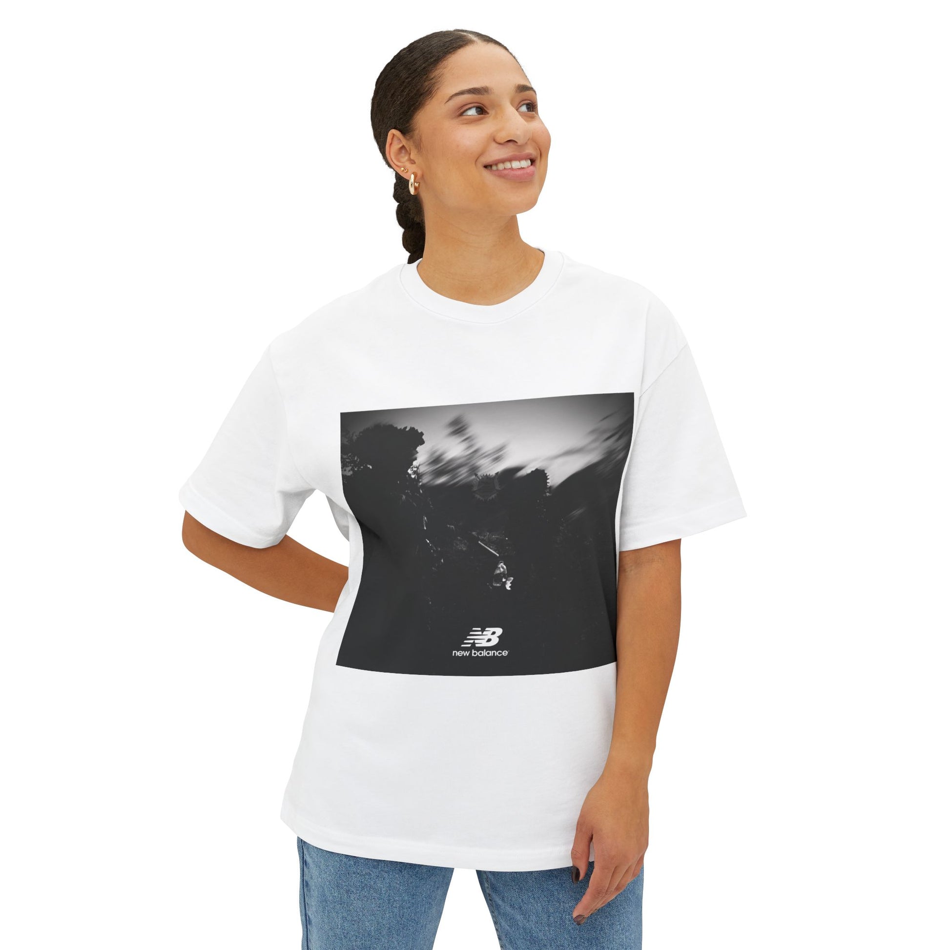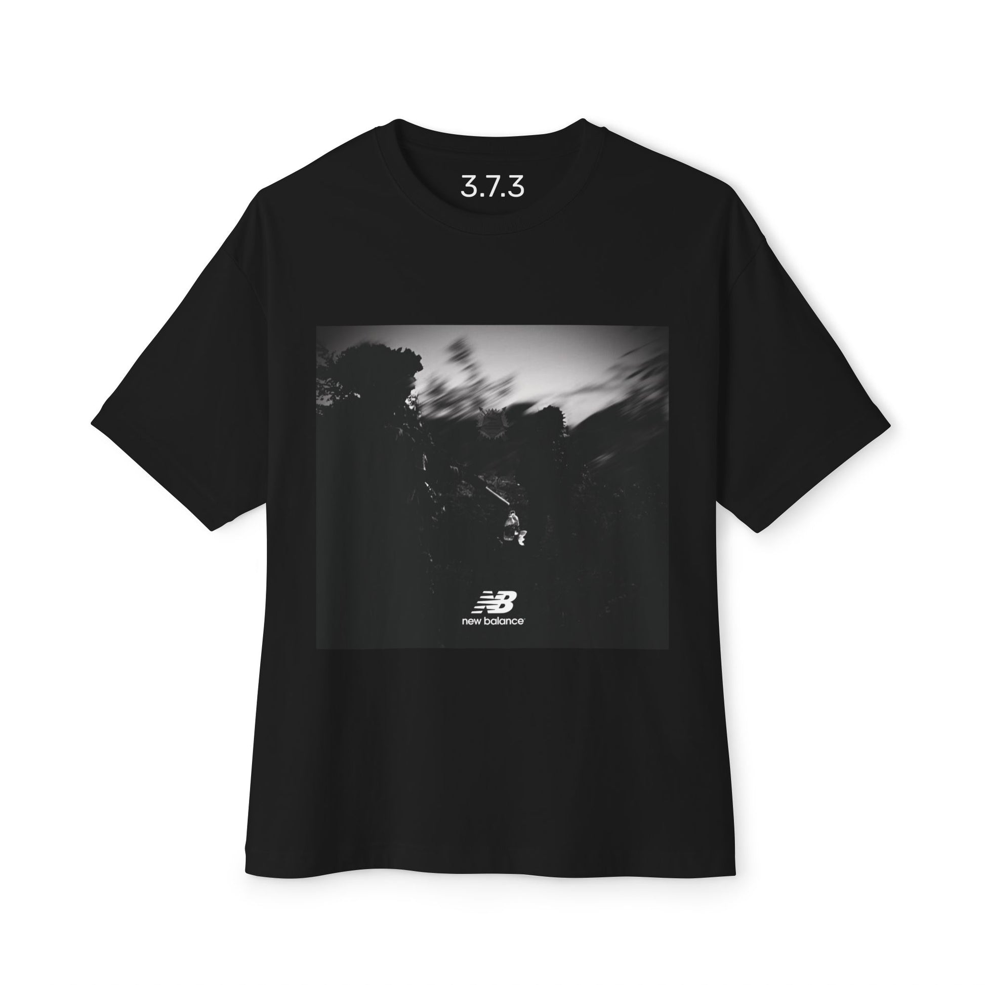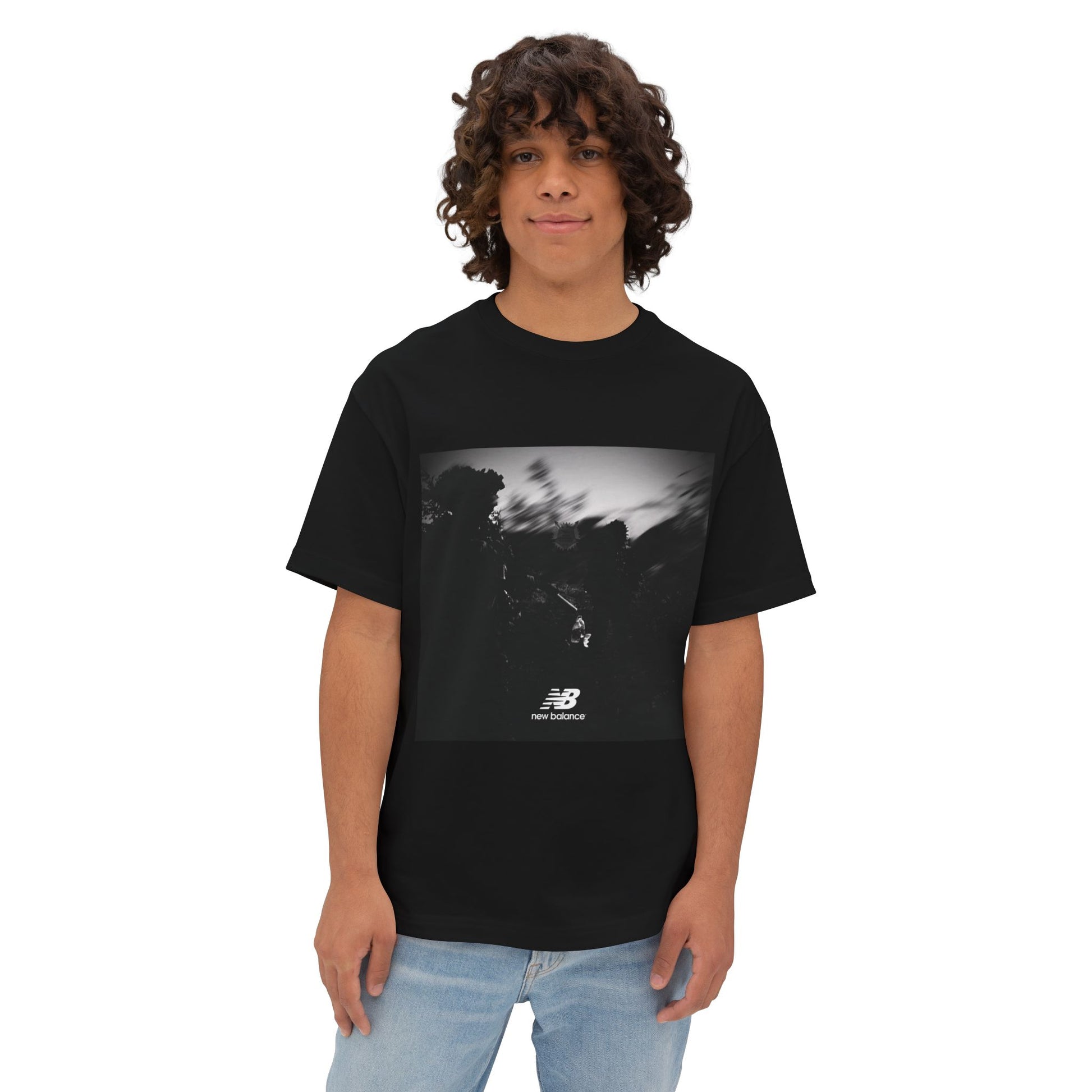 This oversized boxy tee brings a laid-back street edge to everyday wear. The relaxed, dropped-shoulder silhouette drapes easily over the body, creating a casual, lived-in look that works layered or solo. The front features a moody, cinematic graphic with subtle silhouettes and a bold logo block, giving the shirt an urban, dusk-time vibe—like late-night runs, city skate sessions, or coffee-fueled creative shifts. Medium-weight cotton gives it structure without feeling stiff; the tear-away label and durable double-needle stitching mean it stands up to repeated wear and washes. Wear it with tapered joggers and high-tops or throw it over a long-sleeve for a chilled, layered outfit that reads intentional and comfortable.